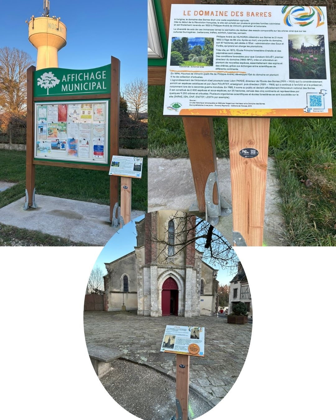 Une légende veut qu’Ythier, un berger vivant sur la commune vers l’an 700 fit jaillir l’eau par temps de grande sécheresse en frappant le sol de son bâton et devint évêque de Nevers. Le prieuré Saint Martin de l’ordre de Saint Augustin est donné à l’abbaye de Saint Jean de Sens, en 1145, par Hugue de Toucy, archevêque de Sens. Une église existe donc déjà à cette époque mais l’actuelle ne date que de 1869. D’après une légende, Jeanne d’Arc serait passée plusieurs fois à Nogent situé sur le trajet entre Gien et Montargis, elle aurait même campée autour du 28 juin 1429 à la Mivoie. Mais les historiens ne s’accordent que sur le fait qu’elle soit passée à Nogent autour du 20 septembre 1429 accompagnée du jeune roi et de son armée en retraite suite à l’échec de Paris. Le pape Pie VII célébra la messe en 1804 dans l’église paroissiale au cours de son voyage à Paris pour le sacre de Napoléon Ier. Le domaine des Barres est acheté par M. de Vilmorin, grainetier du roi en 1820. Il recherche une propriété aux sols variés pour tester le comportement d’espèces d’arbres exotiques. Les résultats de ces premières plantations ont contribué à la réussite des grands programmes de reboisement dans les forêts de plaine française du début du XIXe siècle. Puis à la fin de ce siècle, est créée une collection botanique qui fait aujourd’hui la gloire de la région (2700 espèces d’arbres et d’arbustes). Nogent sur Vernisson a été reliée à Châtillon-Coligny le 1er février 1907 jusqu’en 1935 par un tramway que l’on surnomme « Le Tacot ». Le parcours nogentais Retrouvez l'intégralité du parcours nogentais ici Découvrez les histoires complémentaires : - Lavoirs > cliquez ici - Le Tacot > cliquez ici - La maison 4 rue de Montbouy > cliquez ici - Les sarcophages > cliquez ici - Le Moulin Drouet > cliquez ici - La voiture à chien > cliquez ici - La fontaine Saint Ythier > cliquez ici Mémoire Découvrez plusieurs films anciens sur la commune > ici | Origines gallo-romaine